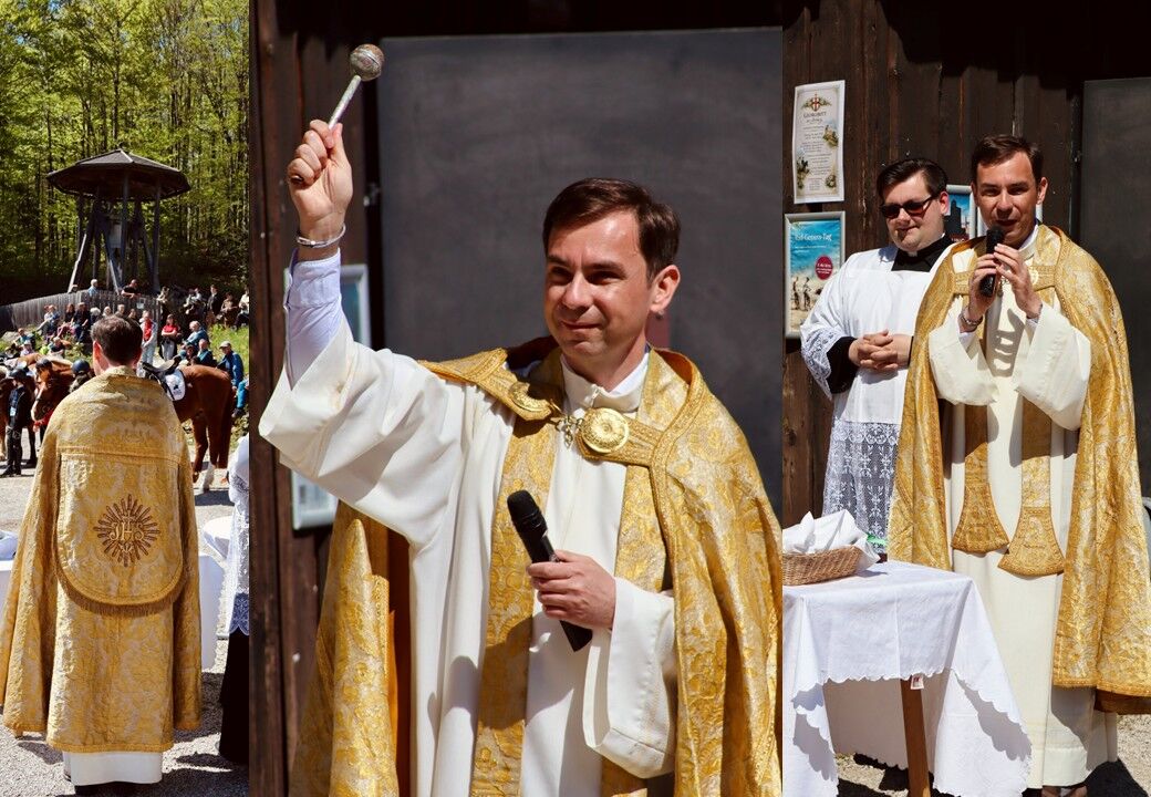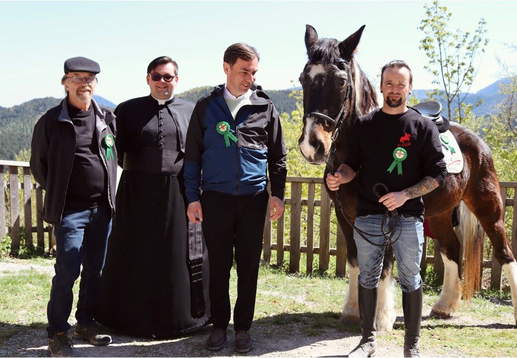 Bei strahlender Stimmung fand am Sonntag, dem 26. April, auf der Araburg die traditionelle Pferdesegnung statt. Insgesamt 15 Reiterinnen und Reiter nahmen mit ihren Pferden an der Veranstaltung teil und sorgten für ein eindrucksvolles Bild vor der historischen Kulisse der Burg. Die Segnung wurde von Pfarrer Slavomir würdevoll durchgeführt und verlieh der Veranstaltung einen feierlichen Rahmen. Musikalisch umrahmt wurde die Feier von den Kaumberger Jagdhornbläsern, die mit ihren Klängen für eine besonders stimmungsvolle Atmosphäre sorgten.
