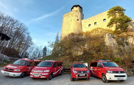 Kommandant Anton Weiss hieß die Kameraden im Feuerwehrhaus herzlich willkommen, bevor sie die modernen Einsatzfahrzeuge und die vielseitige Ausrüstung bestaunen konnten. Anschließend führte der Weg zur historischen Araburg, wo Christine Dworschak den Teilnehmern das „Szenarium Araburg“ in einer lebendigen und informativen Führung näherbrachte. Die Aussicht vom Bergfried war für die wagemutigen Kameraden, die den Aufstieg wagten, ein besonderes Highlight: Ein herbstliches Panorama, das die Schönheit der Region in voller Pracht zeigte.