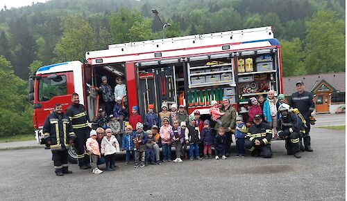 In einem ersten Schritt waren zwei Mitglieder unserer Feuerwehr im Kindergarten, um die Fluchtwege und Abläufe mit den Pädagoginnen zu besprechen. Kurz darauf besuchten die Kindergartenkinder unser Feuerwehrhaus, um die Feuerwehr kennenzulernen und ihnen die Angst vor der Feuerwehr zu nehmen. Denn wenn man das erste Mal einen voll ausgerüsteten, maskierten und pfauchenden Atemschutzträger sieht, kann das schon furchteinflößend sein. Bei dem Ausflug ins Feuerwehrhaus konnten die Kinder nicht nur die Ausrüstung bestaunen, sondern diese auch selbst benutzen. Der krönende Abschluss war eine Fahrt mit dem „großen roten Auto“. Der nächste Termin galt der Abstimmung der Fluchtpläne, Alarmierungsmöglichkeiten und Brandschutzpläne der Volksschule. Zusammen mit der Schulleitung wurden offene Punkte geklärt und auch die Gemeinde in die Vervollständigung der vorbeugenden Maßnahmen eingebunden.