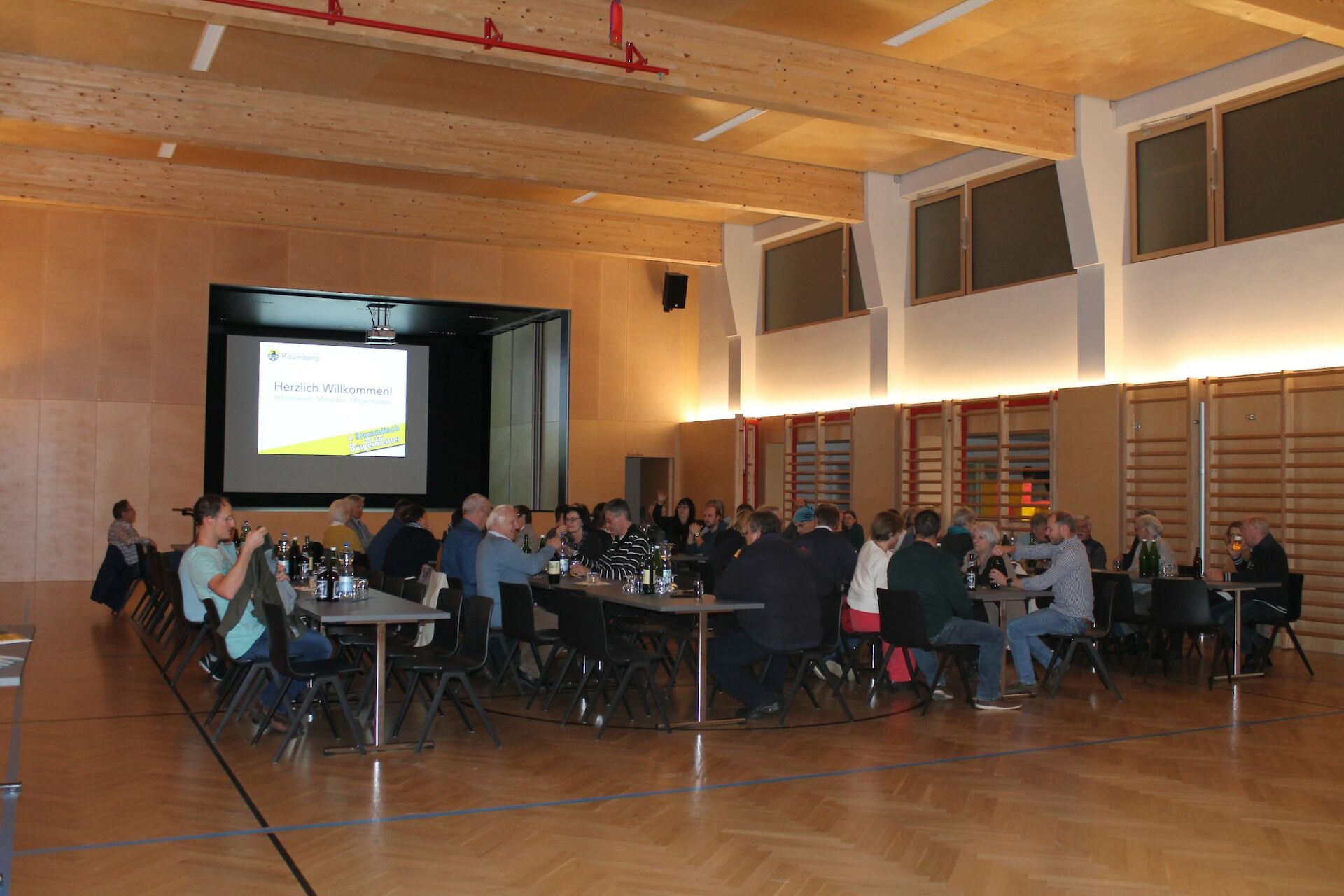 Am 19. November 2022 fand zum bereits vierten Mal der Bürgermeisterstammtisch statt - erstmals in der rundum erneuerten Mehrzweckhalle, was zu einem ganz besonderen Ambiente beitrug. Nach zweijähriger Coronapause war das Interesse an aktuellen Gemeindethemen und -projekten besonders hoch und auch die vierte Ausgabe der Veranstaltung dementsprechend gut besucht. Als Bürgermeister durfte ich den 85 Besucher/innen einen Überblick und Informationen zu den wichtigsten Projekten der letzten Jahre geben, darunter dem Ausbau der Araburg, der Neugestaltung von Gemeindehomepage und Gemeindezeitung, dem Wechsel des Abfallverbands und der Sanierung der Mehrzweckhalle.